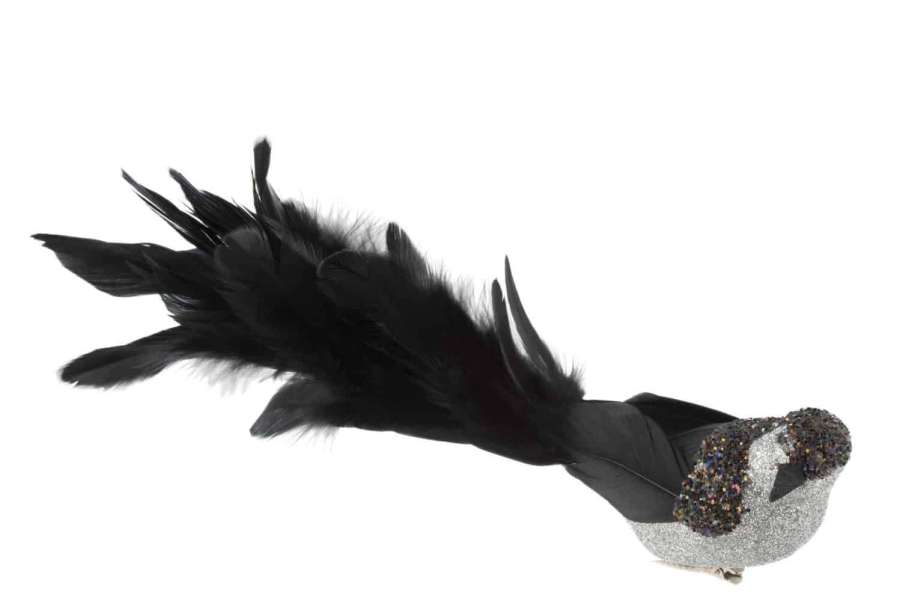 BIRD+CLIP FEATHERS GLITTER BLACK LARGE