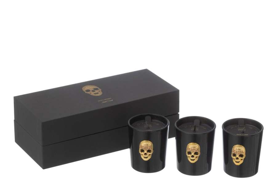 BOX OF 3 SCENTED CANDLE SKULL NUIT NOIRE-16HOURS