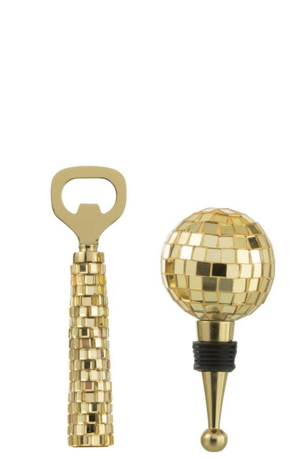 BOX OF 4 BOTTLE OPENER + BOTTLE STOPPER MOSAIC GLASS GOLD COLORED