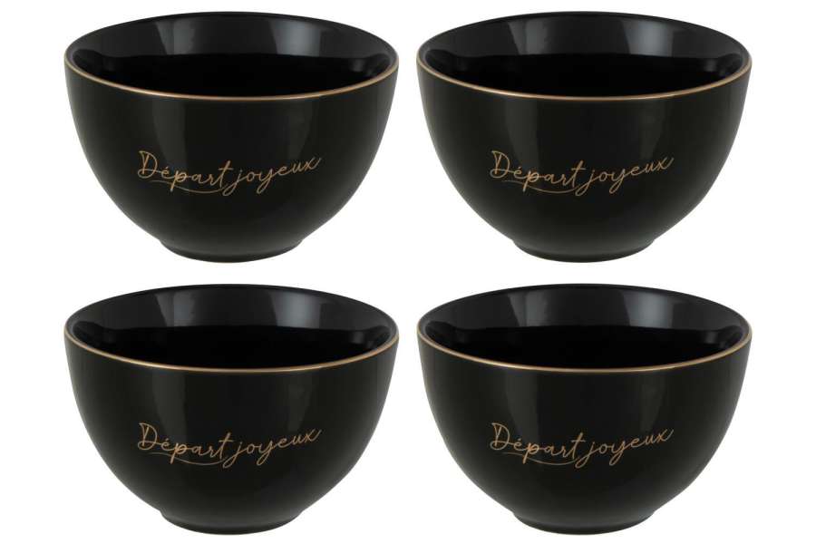 BOX OF 4 BOWL PORCELAIN DÉPART JOYEUX BLACK/GOLD SMALL