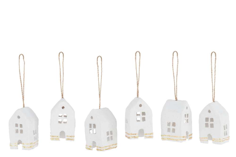 BOX OF 6 HANGER HOUSE COTTON MACHE WHITE WITH GOLD