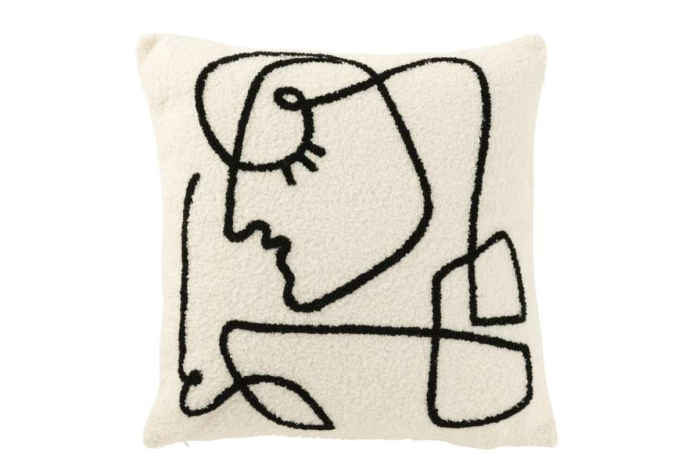 CUSHION ABSTRACT FACE BOUCLÉ WHITE/BLACK