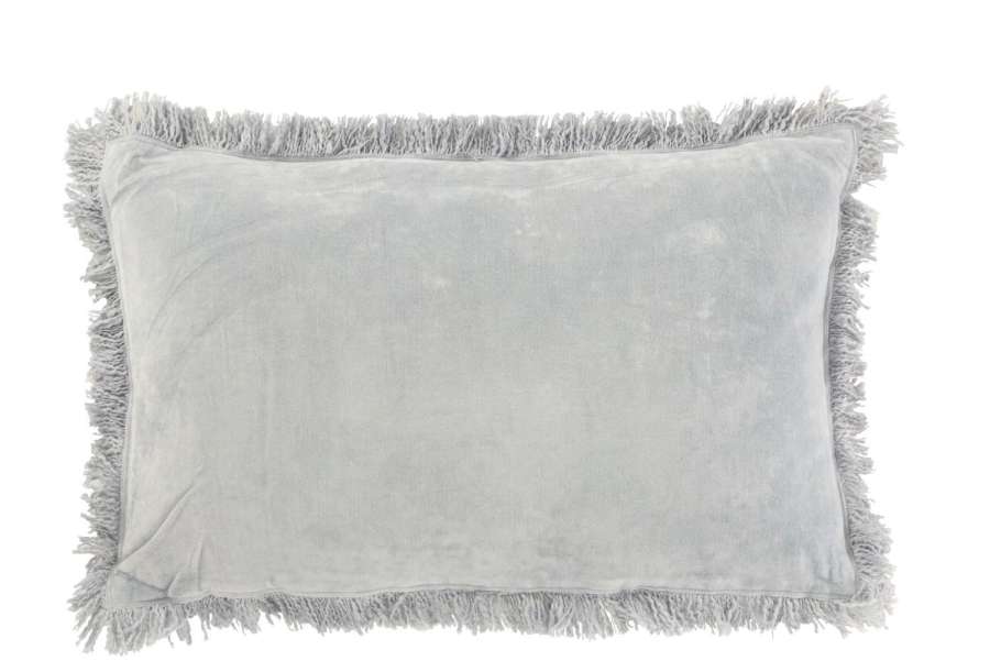 CUSHION FRINGE COTTON VELVET BLUE