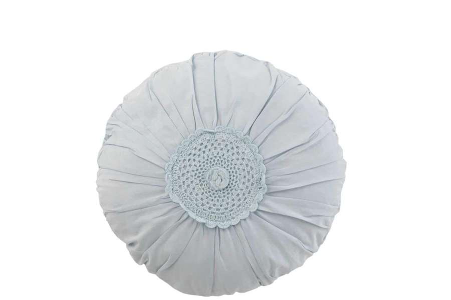 CUSHION ROUND LACE COTTON BLUE