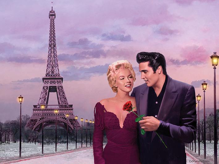 Elvis og Marilyn Monroe under Eifeltårnet i «Paris sunset» 60×80 cm.