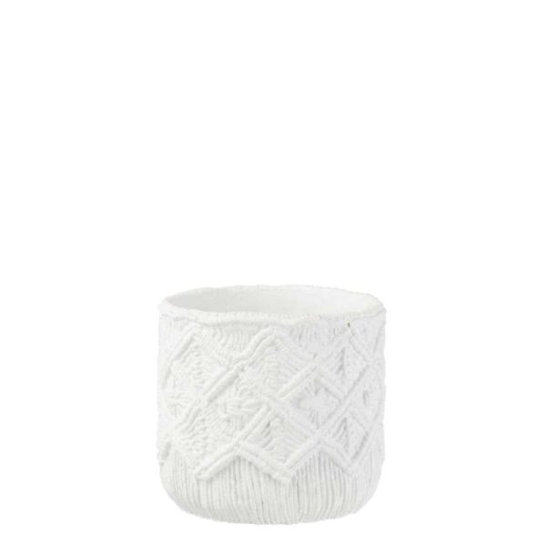 FLOWERPOT CHECKERED CEMENT WHITE MEDIUM