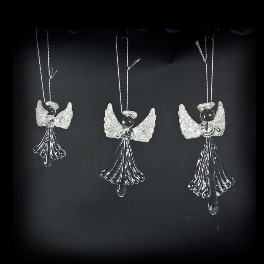 Glassengel  Heng Klar/Sølv Stor 15Cm