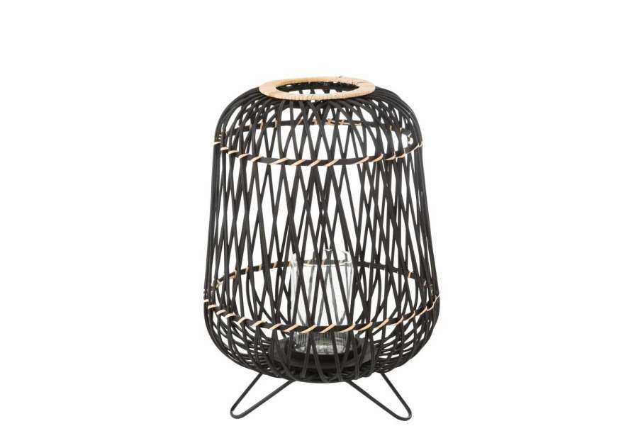LANTERN ON FOOT BAMBOO BLACK/NATURAL MEDIUM