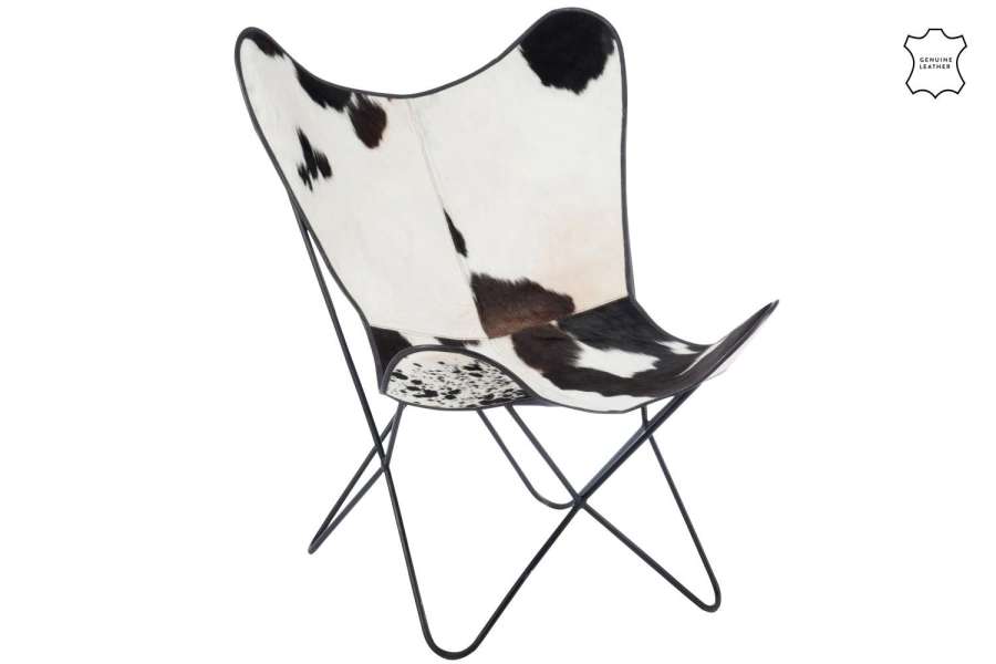 LOUNGE CHAIR COWHIDE/METAL WHITE/BLACK