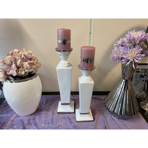 Lysestake Hvit/Sølv Liten 32Cm
