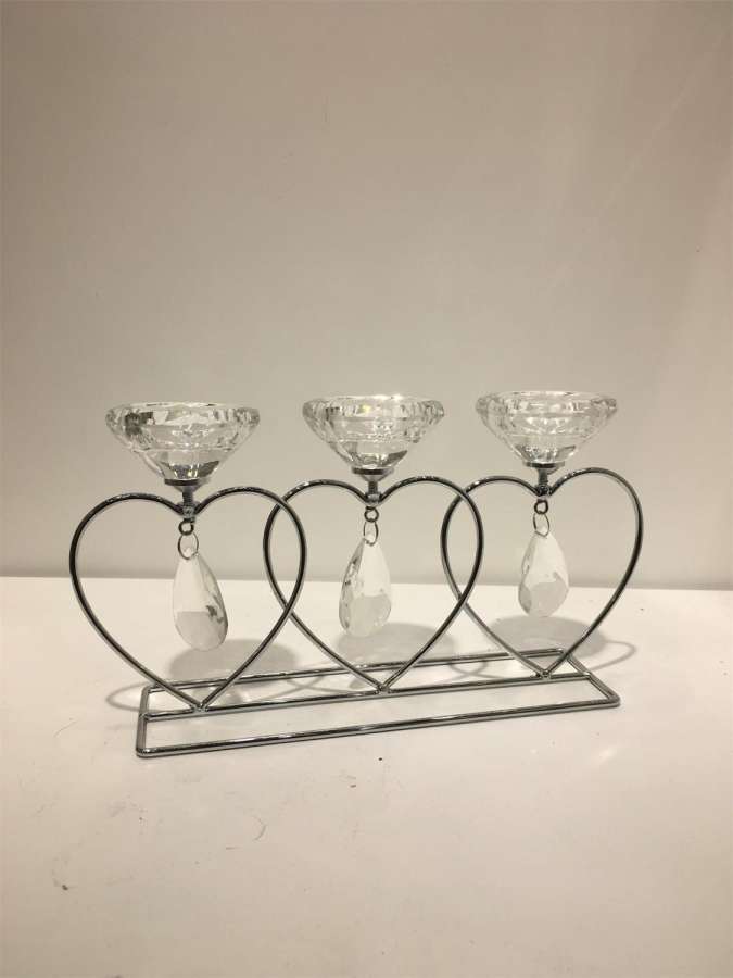Lysestake Krystall/Metall Hjerte X3 26X1