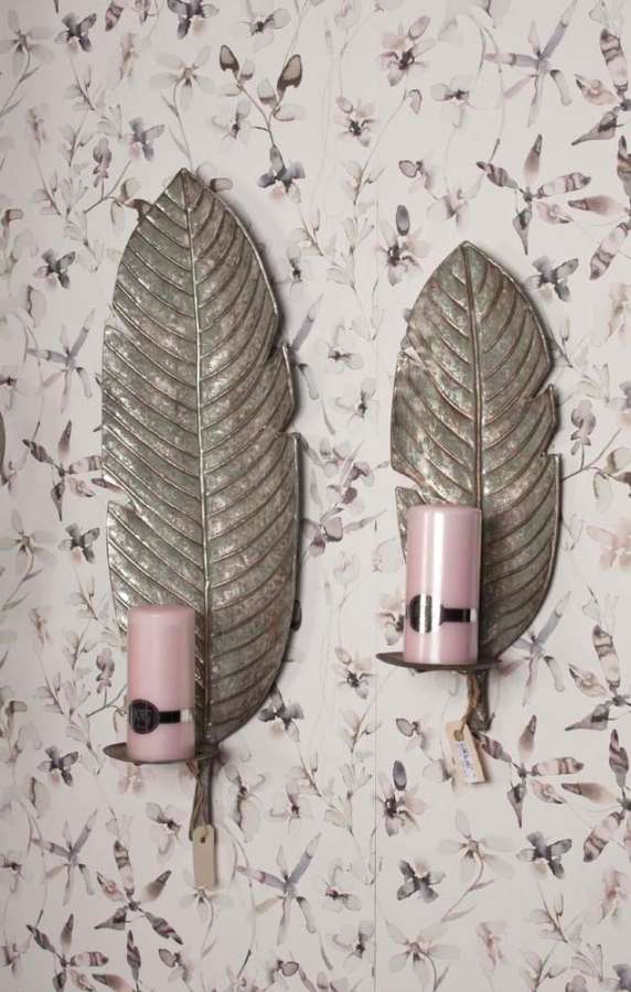 Vegglysestake i metall til kubbelys formet som ett blad i Sølv/Grå -17×46 cm.