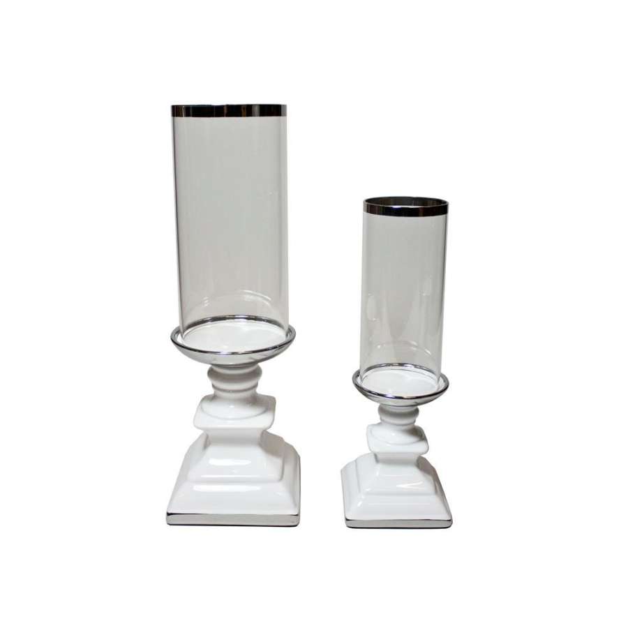 Stormlykt Hvit/Sølv Stor 45Cm