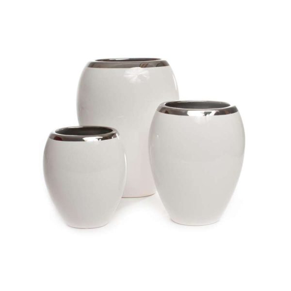 Vase Hvit/Sølv Medium 20X25Cm