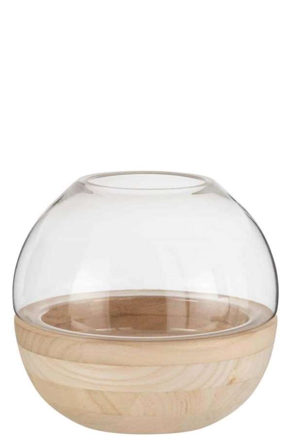 VASE ROUND WOOD/GLASS LIGHT BROWN