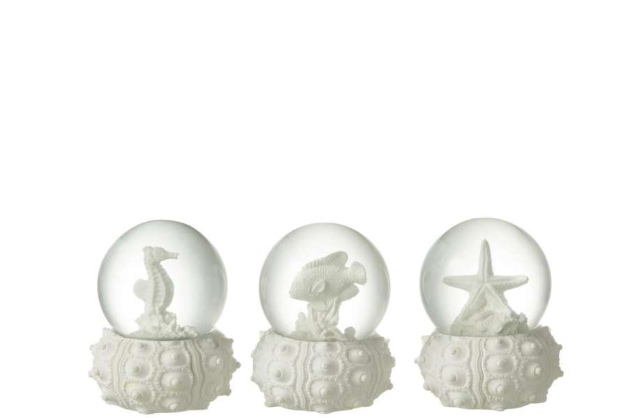 WATERGLOBE SEA POLYRESIN WHITE SMALL ASSORTMENT OF 3