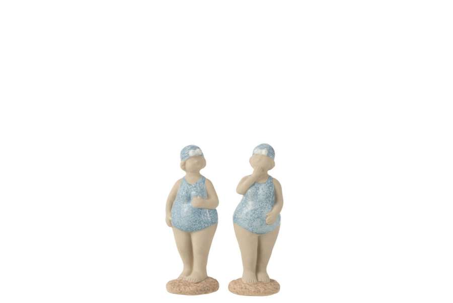 WOMAN BATHING SUIT STANDING CERAMIC BLUE SMALL ASSORTMENT OF 2